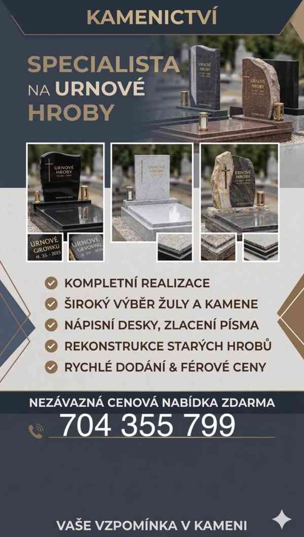 Nabízíme realizaci a úpravy urnových hrobů s důrazem na kvalitu, estetiku a dlouhou životnost. Každý hrob je pro nás individuální záležitost – víme, že nejde jen o kámen, ale o místo vzpomínek.